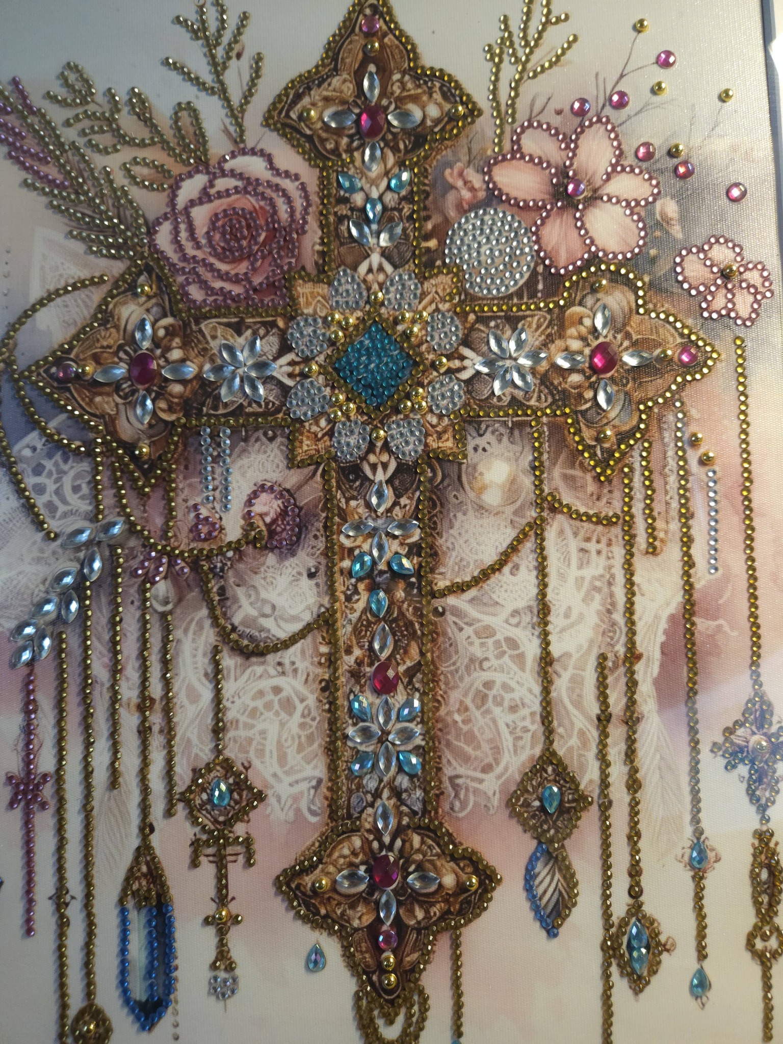 Perfect as a gift for loved ones or as a treat for yourself, this artwork is sure to bring joy and inspiration. Imagine the smiles it will bring to family and friends as they admire its beauty and the message it conveys. Don't miss out on the chance to own this exquisite piece of Rhinestone Art that beautifully combines artistry and spirituality.