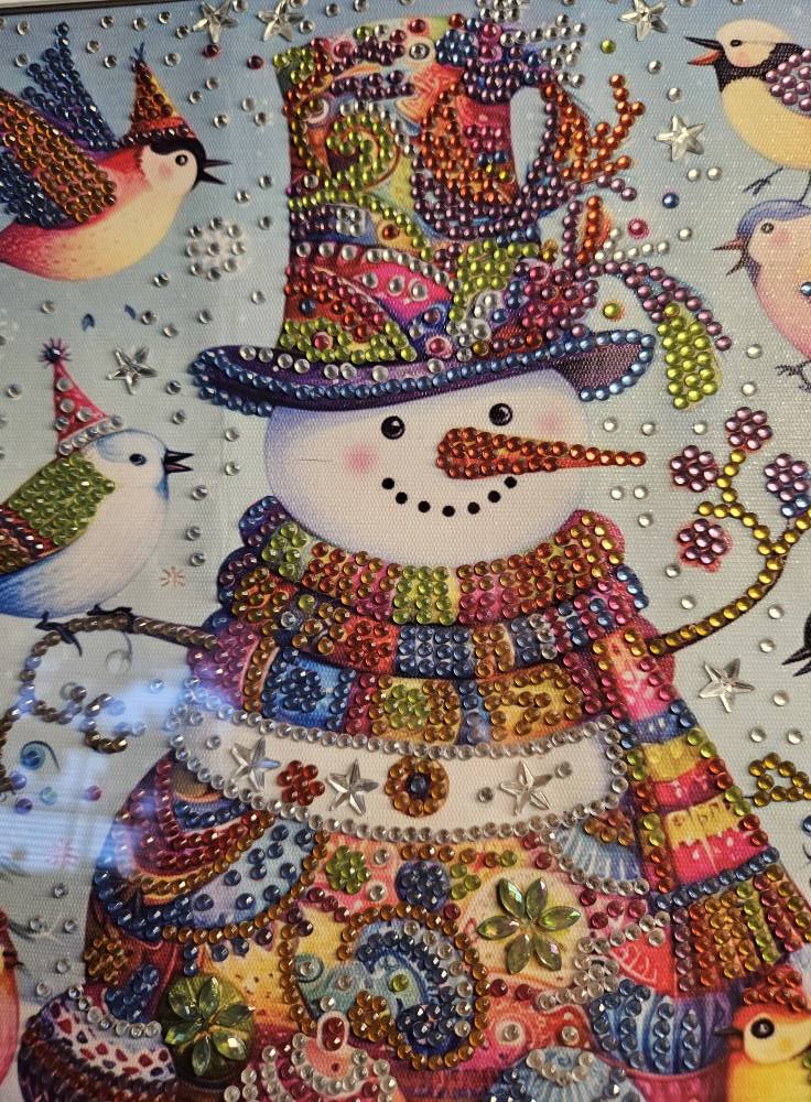 Crafted with high-quality materials, the Festive Snowman 12x12 Framed Rhinestone Art is designed to last for many Christmases to come. The sturdy frame not only enhances the artwork but also makes it easy to display. Plus, it makes for a fantastic gift for friends and family who love unique holiday decorations.
