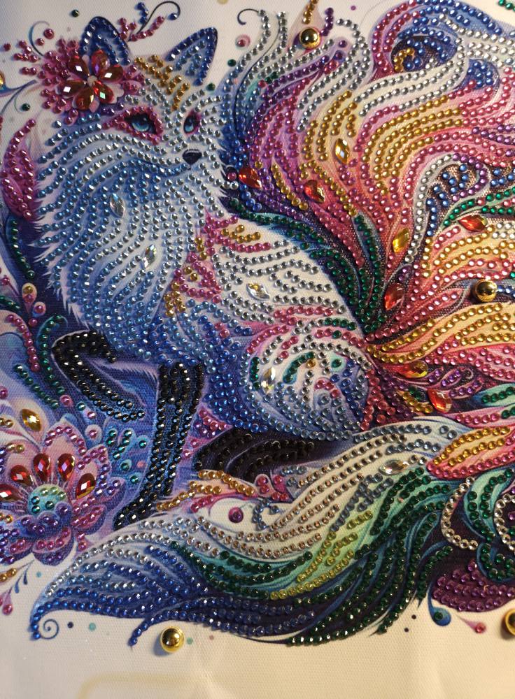 Vibrant 9 Tail Fox 12x12 Framed Rhinestone Art